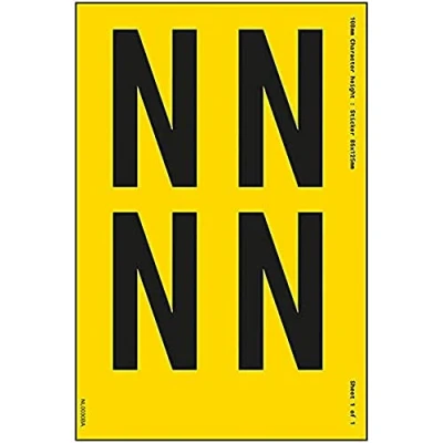 One Letter Sheet N 13mm Character Height 300x200mm Yellow Adhesive Vinyl