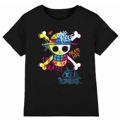 One Piece Boys Jolly Roger Graffiti Kids T Shirt, Black, 7 8 Years UK