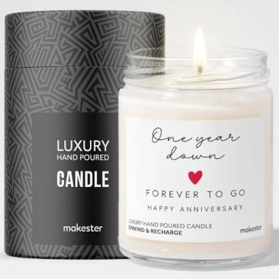 One Year Down Candle Luxury Soy Wax Anniversary Gift Madagascan Vanilla, Jasmine, Sugared Almond 1st Paper Makester