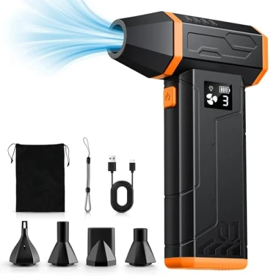 Super Power Airflow & Deep Cleaning:This compressed air reaches speeds up to 120,000 RPM with a maximum wind speed of 44 m/s, effortlessly removing dust and debris.With 3 adjustable wind speeds,it efficiently handles your all cleaning tasks. Durable Battery & Fast Charging:Our air duster built-in high quality battery for long-lasting performance.Fully charges in 2.5 hours and powers up to 250 minutes of runtime on the lowest gear.4 charging options for power anywhere.With overheating protection,our compressed air cleaner for pc ensure lifespan and consistent performance long-term. Reusable&Energy-Saving:Different form traditional compressed air cans, our air blower can be reused,energy-saving and upgrading your cleaning experience.No liquid will be produced during cleaning and will not damage your electronic devices.Our air duster are an alternative to air cans, one-time investment that lasts long time. LED Light & Portable Design:Weighing only 0.5lb(228g),our cordless mini blower features lightweight and portable. Its LED light and storage bag make it perfect for indoor cleaning, outdoor adventures, travel and camping.Plus,LED light design allows you to clean more easily in the dark. Multi-Purpose & Safe to Use:5 nozzles and a portable lanyard make cleaning versatile, safe, and hassle-free.ONEWAY electronics compressed air dusters easily cleans PC,keyboards, cameras.perfect for home, car, and outdoor use,such as leaves or snow clearing, starting campfires, and drying pet hair.