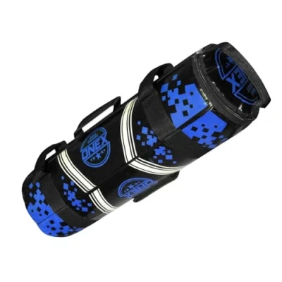 ONEX Power Bag Weighted Sandbag for Strength Training, Functional Fitness, MMA, Boxing, and Home Gym Durable PU Leather, Secure Grip, Multiple Weights Available (5kg 20kg) (Black & Blue, 25kg)