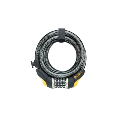 Combo locks feature steel ball Click-Combo-Gear System that’s user settable with 10,000 possible variations New Double Rubber Coated lock head covers protect paint and finishes Attached Velcro straps contain unruly coils during transport. Mounting Bracket Included Lifetime Warranty