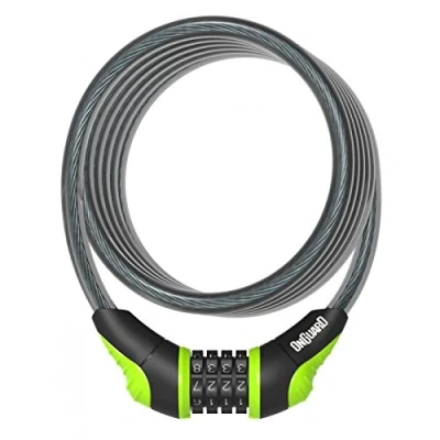 4 digit re-settlable combination with Steel ball Click Combo-Gear System Heavy-duty steel cable which is self-coiling for convenience and covered in vinyl to protect paintwork against scratches Mounting bracket included Lifetime Warranty
