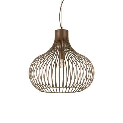 This fitting has an interesting design which will create a positive lighting effect in the room. The fitting has an entirely metal frame, which is varnished in metallic brown. The light shines through the gaps between the metal strips, and out of the bottom of the shade. This fitting is available in four different sizes; sure to offer the perfect fitting, whatever the size of the room. Class two.