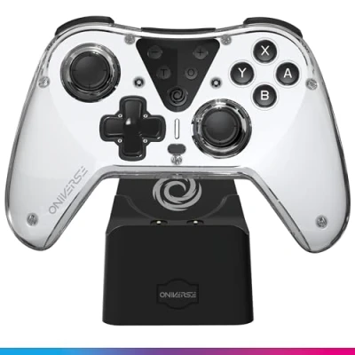 Oniverse Wireless Controller Compatible with Switch OLED Lite PC ANDROID iOS, Charging Dock, Adjustable Vibrations, Macro Buttons, Turbo Mode, Wake Up, 6 Axis Gyroscope, Astralite Eridani White