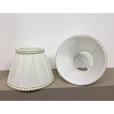 Ideal for table lamps, chandeliers, floor lamps, lampshades Bottom diameter 16 cm, top diameter 9 cm, height 11 cm Light ivory pleated fabric with hand-stitched gold border Fitting with white springs that place around the bulb (use with olive bulbs) Extremely versatile style that suits both classic and modern spaces or contemporary décor.