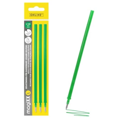 FOR YOUR FAVOURITE ROLLERBALL: Use your favourite eraser pen again and again with the practical ONLINE refill leads for erasable ink rollers – Suitable and compatible with erasable gel pens of the brand LEGAMI. Relaxed writing: simply erase small writing errors - the ink can be removed completely and without smudging without residue. No more crossing out, ink erasers, and messy worksheets – thanks to erasable gel pens. GREAT WRITING EXPERIENCE: Smooth ink flow & consistent color are standard with ONLINE gel refills. The refills for erasable pens are ideal for learning to write and are practical for everyday use and office. The leads are characterised by a scratch-free writing flow without interruptions. FOR THE ENVIRONMENT: With eraser pen refills, plastic waste can be avoided. Instead of disposing of the pen, simply insert a replacement cartridge. Available in bright colours. Offline with Online – the Online brand quality: We at Online are a German family business that has been producing high-quality, innovative, functional and carefully designed stationery with enthusiasm and passion since 1991 and takes writing fans into the world of creativity.