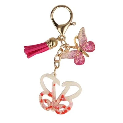 ONLINE Barbie Keyring Letter B I "Barbie B" Keychain as Bag Pendant or Car Key Fob, Gold with Butterfly & Letter, for School Enrolment Girls