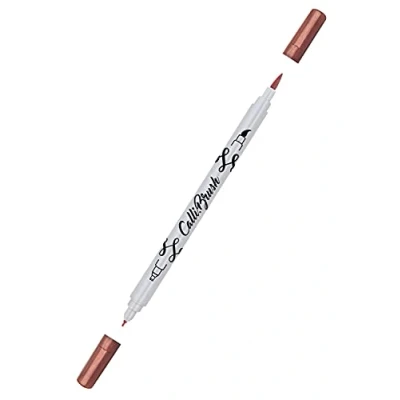 Online Calli.Brush Pen with Double Tip, Brush and Calligraphy Hand Lettering Pens in Various Colours, Colourful Bullet Journal Pens, Metallic Red