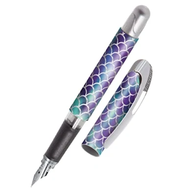 Online College ink pen Shiny, ergonomic fountain for school/college, medium nib, soft grip part, standard cartridges, refillable, ideal beginners, pupils