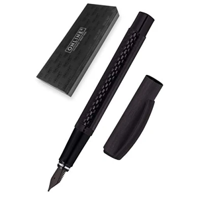 FOR THE CALLIGRAPHER IN YOU: Made of aluminium and carbon with an elegant spring-loaded metal clip. Comes in a premium gift box, perfect present for christmas, anniversary, birthday and more. PERFECT GRIP: The comfort lies in the details – the grip zone made of acryl is especially comfortable and provides a long pleasure of writing. The pen for highest demands. EXCHANGEABLE NIB: The medium iridium nib is made in Germany. Thanks to the useful “easy change system” the nib can be exchanged easily. CARTRIDGES AND CONVERTERS: Suitable for all standard cartridges and converters. We recommend large ONLINE double-sided ink cartridges for extra-long writing. One ink cartridge blue is included. ONLINE BRAND QUALITY: ONLINE is a German company founded in 1991 and specialises in pens, calligraphy kits, pen cases and much more. ONLINE offers Quality only!