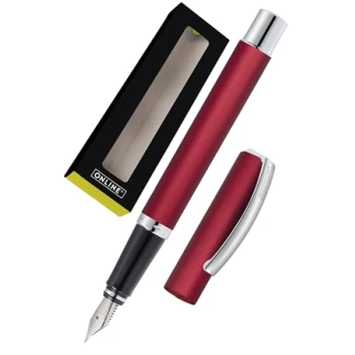 FOR DESIGN FANS: Made of aluminum with an elegant spring-loaded metal clip. Comes in a premium gift box, perfect present for women, men, and children. PERFECT GRIP: The grip zone made of acryl is especially comfortable and provides a long pleasure of writing. The pen for highest demands, SOLID NIB: Equipped with a high-quality iridium nib, line width M (medium). The fountain pen provides a comfortable writing experience with a smooth ink flow. CARTRIDGES AND CONVERTERS: Suitable for all standard cartridges and converters. We recommend large ONLINE double-sided ink cartridges for extra-long writing ONLINE BRAND quality: ONLINE is a German company founded in 1991 and specialises in pens, calligraphy kits, pen cases and much more.