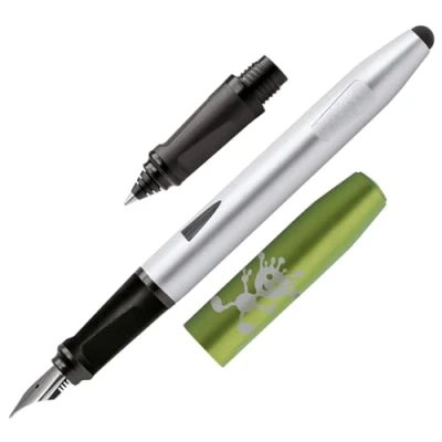 PEN - The ONLINE SWITCH beginners fountain pen and a beginners rollerball grip, which can be exchanged easily, is perfect for the individual writing style of every beginner. NIB - Both the beginners fountain pen with an extra robust iridium nib A (beginner) and the solid rollerball guarantee a soft and fluid writing feeling. CARTRIDGES - Refillable with standard ink cartridges or ONLINE combi ink cartridges. The set contains one ink cartridge writing colour blue. FORM - The soft and ergonomically shaped grip part and the weight of the pen are ideal for all beginners in everyday school life. STYLUS TIP - The SWITCH Starter disposes of a high quality stylus tip that glides softly and easily over the capacitive touch screens. Special grip zones create secure handling and supports the beginner while exercising on the tablet.