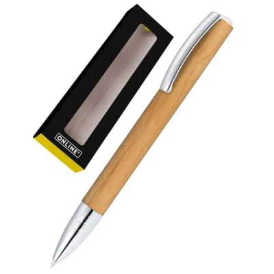 ONLINE Vision Nature Maple Ballpoint Pen Elegant Wooden and Metal in Attractive Gift Box with International Large Capacity Refill Line Width M Black Ink