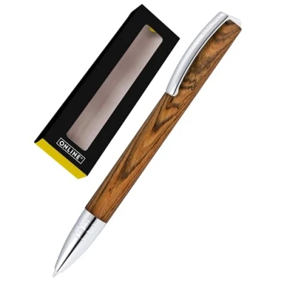 ONLINE Vision Nature Walnut Ballpoint Pen Elegant Wooden and Metal in Attractive Gift Box with International Large Capacity Refill Line Width M Black Ink