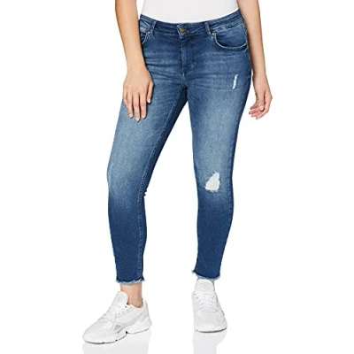 AmazonSkinny jeans with blue wash and torn areas High-waist and shortened ankle length