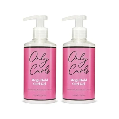 Only Curls Mega Hold Curl Gel Duo, Curly Hair Product, Definer & Frizz Control, Long Lasting Styling Gel, Strong Hold, Defined, Free Without Stickiness, For All Hair, 250ml x2