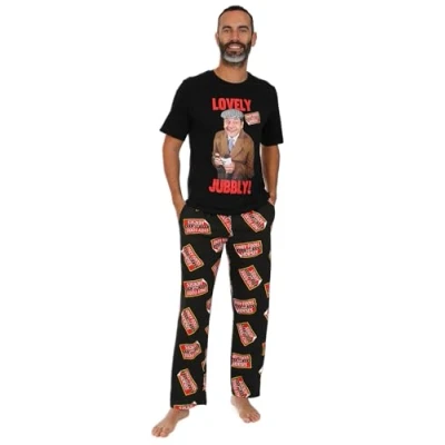 Only Fools and Horses Mens Del Boy Lovely Jubbly Long Pyjama Set Nightwear Loungewear (XXX Large) Black