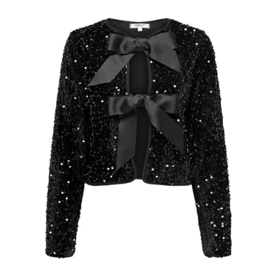 Normal cut Sequin details Bow details Drawstring closure Round neck Long sleeves