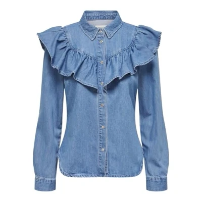 ONLY Locker Geschnitten ÄRMELBÜNDCHEN MIT Knopf Buttondown blouse, Women's, Size: Small, Medium blue denim