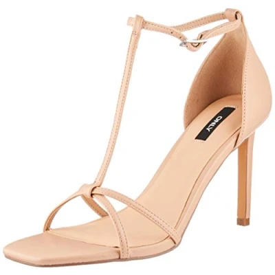 ONLY Men's ONLALYX 5 PU T BAR Heeled Sandal, Nude, UK