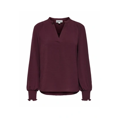 ONLY Mette Vneck LS Smock NOOS WVN Blouse, Women's, Size: Small, Decadent chocolate