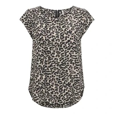 ONLY NOS Women's Onlvic Ss Aop Top Noos Wvn Short Sleeve Top, Multicolour (Pumice Stone AOP:LEO AOP), 10 (Manufacturer Size: 38)