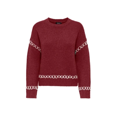 ONLY Onlamanda LIFE Oneck detail Jumper, Women's, Size: XS, Cabernet cloud dancer