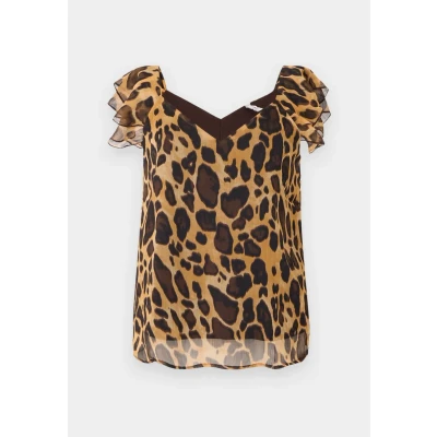 ONLY Onlasta LIFE Capsleeve Vneck Blouse black/warm leo Sale at Zalando UK | Outer fabric material: 100% polyester | Sale order at Zalando UK! Size: Small. Color: Black/warm leo. Pattern: animal print.