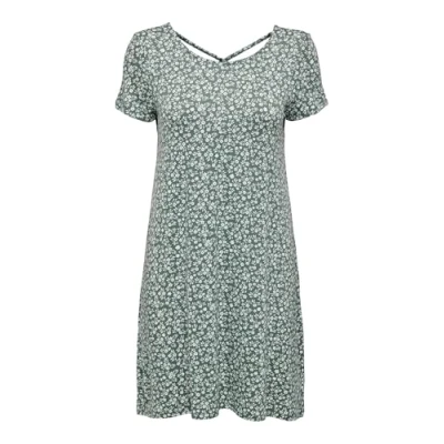 ONLY ONLBERA Women's Loose Shirt Dress, Mini Basic Short Sleeve Summer Back Neck Lacing, Colours: Green, Size: M, Balm Green/AOP: White Flowers, M