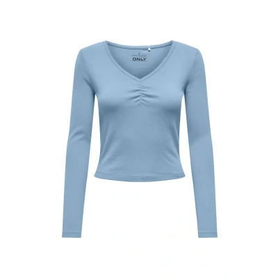 ONLY Onlbetty LIFE L/S Scallop Vneck Long sleeved top, Women's, Size: Medium, Soft chambray