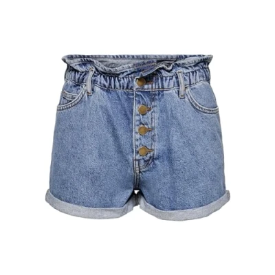 ONLY Onlcuba LIFE Paperbag DNM NOOS denim shorts, Women's, Size: Medium, Medium blue