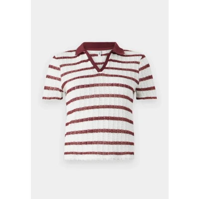 ONLY Onlhalia Collar BOX Polo shirt cloud dancer/ruby wine Sale at Zalando UK | Outer fabric material: 41% polyester, 59% cotton | Sale order at Zalando UK! Size: XS. Color: Cloud dancer/ruby wine. Pattern: striped.