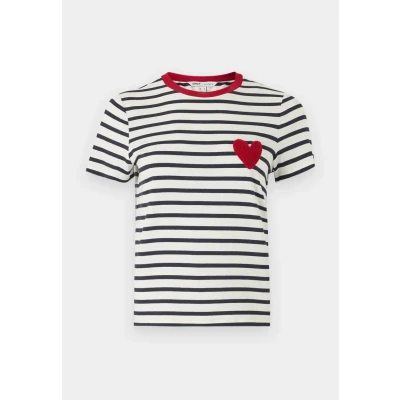 ONLY Heart LIFE TEE Print Tshirt cloud dancer/night sky/red heart Sale at Zalando UK | Outer fabric material: 95% viscose, 5% elastane | Sale order at Zalando UK! Size: Large. Color: Cloud dancer/night sky/red heart. Pattern: striped.