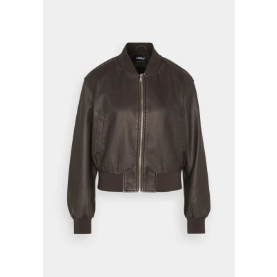 ONLY ONLJANE Women's Faux Leather Washed Bomber OTW Jacket, chocolate brown, S, S