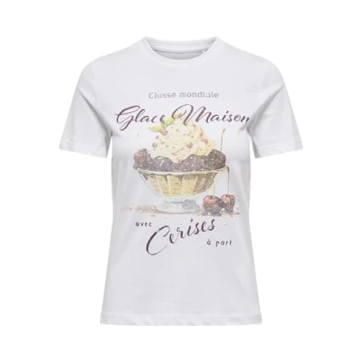 ONLY Onlkaren Dessert Print Tshirt Bright white, Women's, Size: XL, white