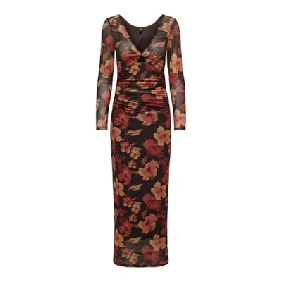 ONLY ONLPARIS L/S Reversible Dress Box JRS, Black Coffee/AOP: Big Flower, L