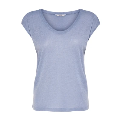ONLY Onlsilvery V NECK NOOS Basic Tshirt, Women's, Size: Medium, Halogen blue