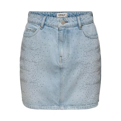 ONLY Onlstella Rhinestone Short Skirt Mini skirt, Women's, Size: XS, Light blue denim
