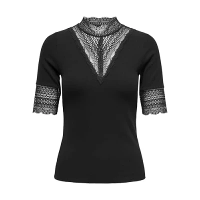 ONLY Onltilde Highneck Print Tshirt, Women's, Size: Small, Black
