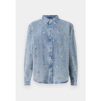 ONLY Onlvera Flower Shirt Buttondown blouse light blue Sale at Zalando UK | Outer fabric material: 100% cotton | Sale order at Zalando UK! Size: Large. Color: Light blue . Pattern: floral.