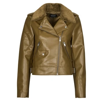 ONLY ONLVILHELMA Women's Faux Leather Biker OTW Jacket, brown, M, M