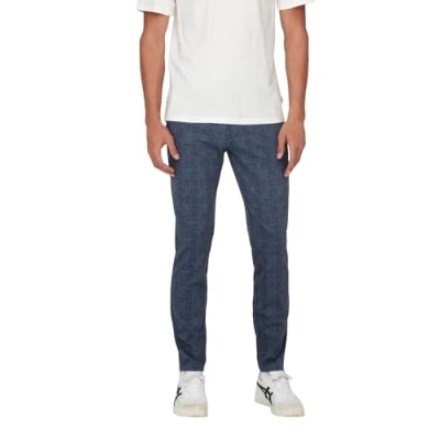 ONLY & SONS Male Chino Trousers ONSMAKR Check Pants HY GW 9887 NOOS, Dress Blues, 30 W/30 L