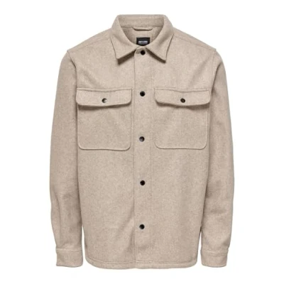 ONLY & SONS Men's Onsash Ovr Woolen Look Pkt LS Shirt Noos Long Sleeve, Chinchilla, XS
