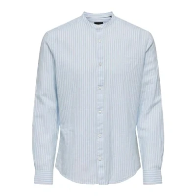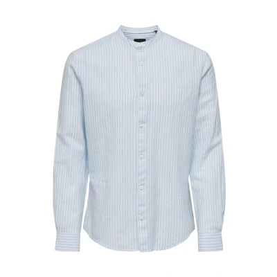 ONLY & SONS Men's Onscaiden Ls Mao Stripe Linen Shirt Noos Long Sleeve, Cashmere Blue, XXL