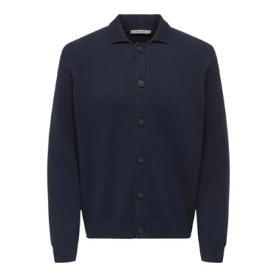 ONLY & SONS Men's Onsjacob Reg Ls Cardigan Knit, Blue Nights, M