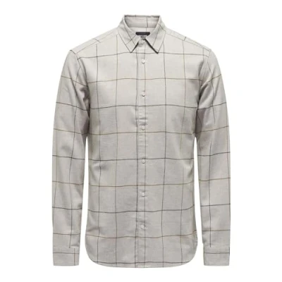 ONLY & SONS Men's Onslars Ls Reg Brush Check Shirt Work Utility T, Light Grey Melange/Checks:Monks Robe, L