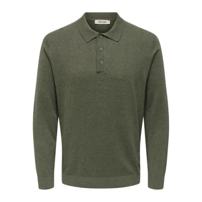 ONLY & SONS Men's Onsloui Reg 12 Ls Mel Polo Knit, Castor Gray, L