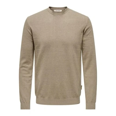 ONLY & SONS Men's Onsloui Reg 12 Mel Crew Knit Jumper, Desert Taupe/Detail: Melange, L