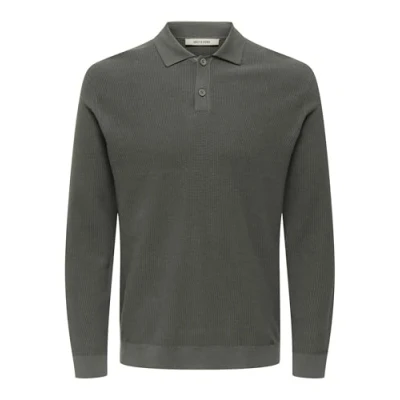 ONLY & SONS Men's Onstony Reg 12 Ls Waffle Polo Knit, Castor Gray, M